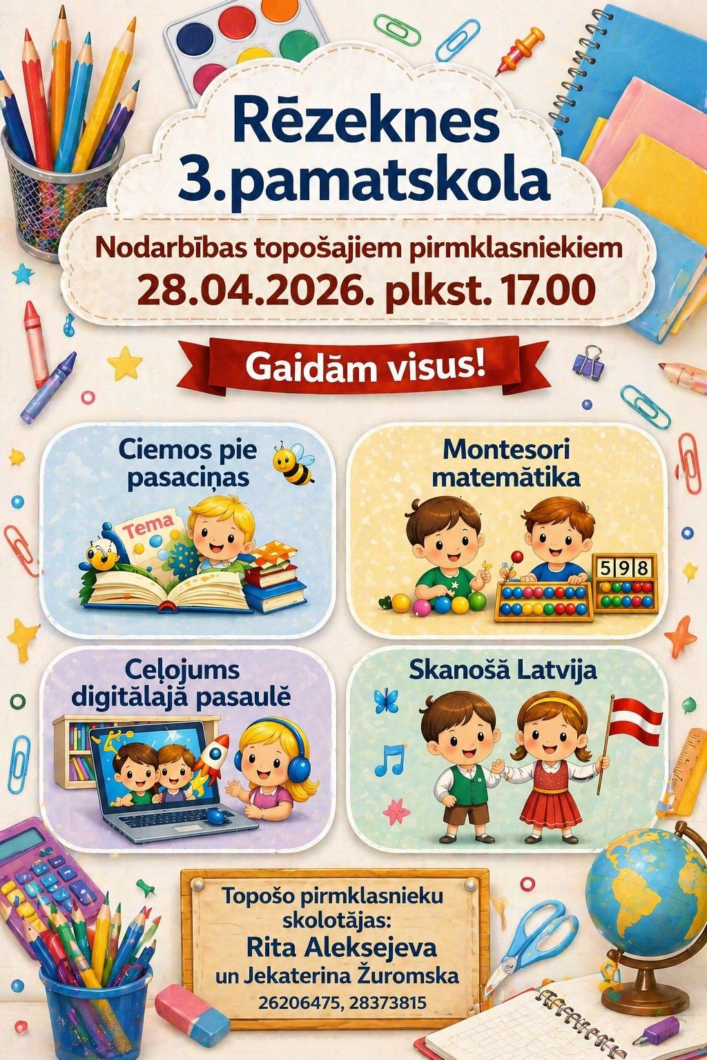 Otrdien topošajiem pirmklasniekiem skolā bija neparasta un aizraujoša diena. Bērni iepazinās ar dzīvnieku , mūzikas un vēstures pasauli. Viņi atkārtoja…