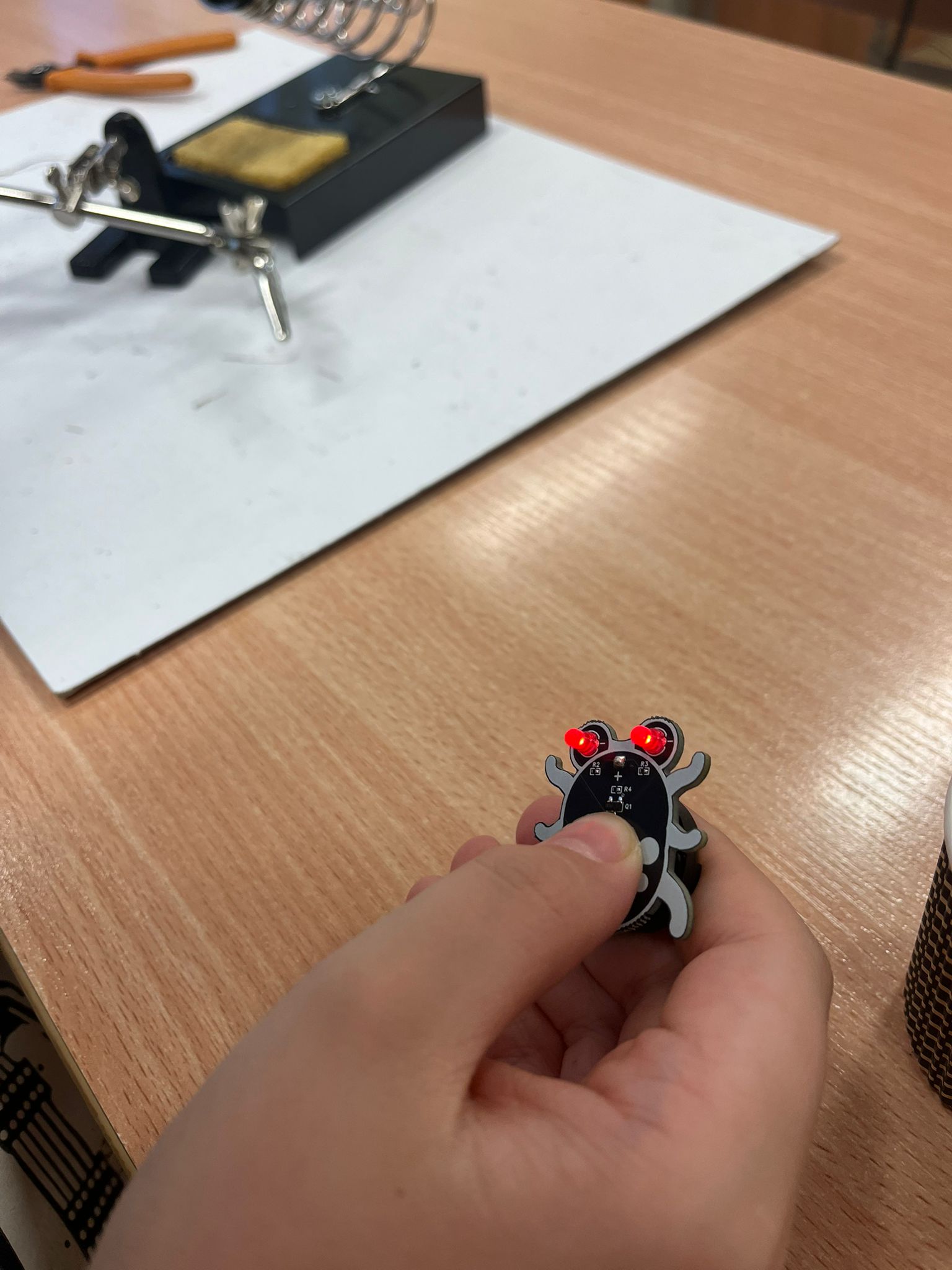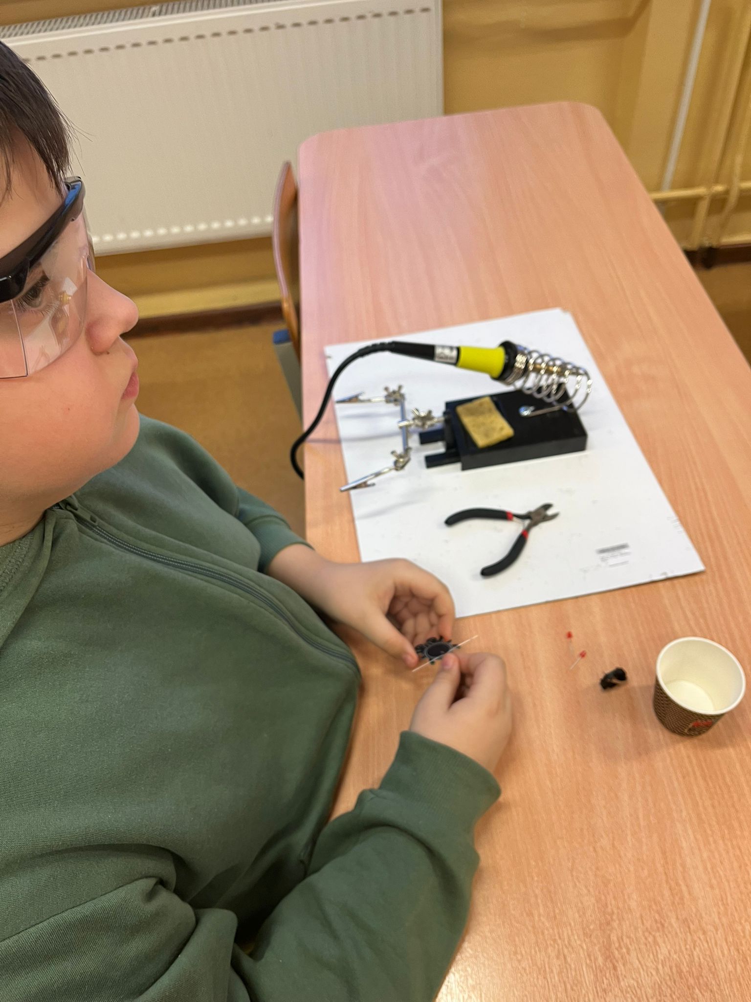 robotu ar LED acīm, kas reaģē uz gaismu. Bērni iemācījās atpazīt elektroniskos komponentus,