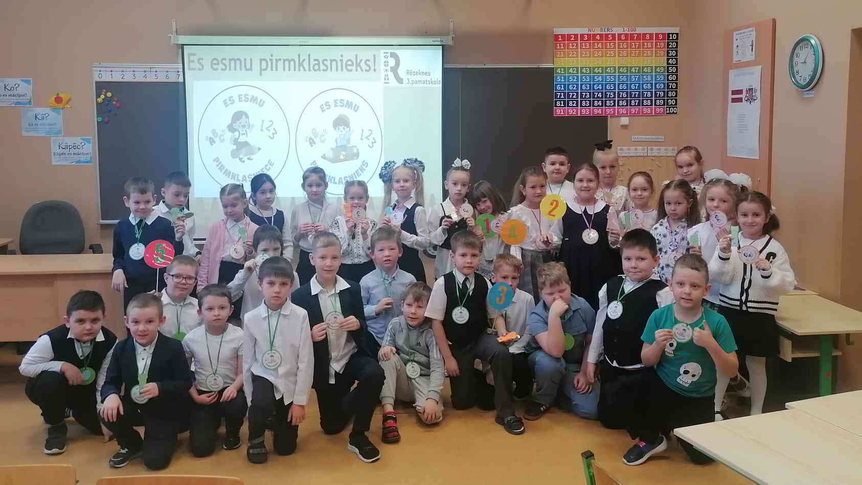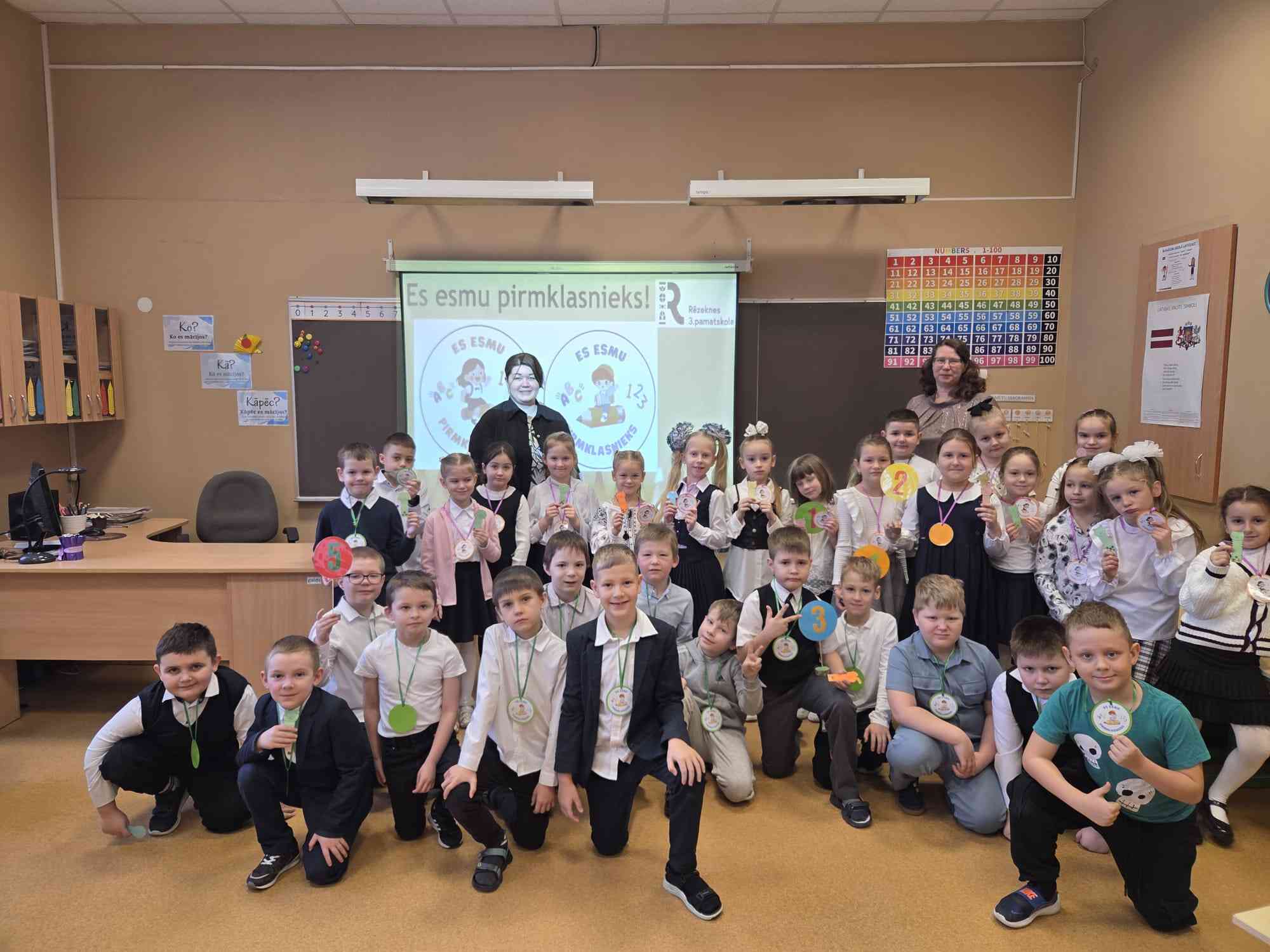 Par aktīvu dalību, centību un drosmi katrs pirmklasnieks saņēma īpašu medaļu.