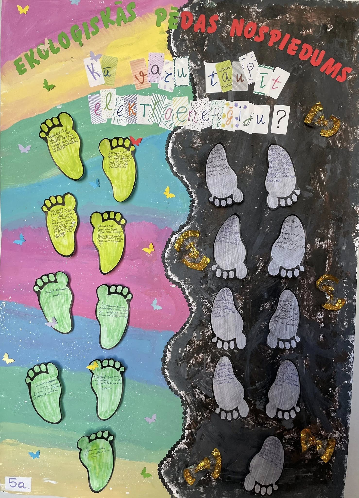 Pārsteidza skolēnu radošums un izdoma, plānojot, ko varētu iesākt vienu dienu bez elektroenerģijas, ar ko varētu aizstāt ikdienā izmantojamās elektroierīces un analizējot, kādas ekoloģiskās pēdas aiz sevis atstāj ikviens cilvēks. Pārdomu braucienā lika doties arī skolēnu veidotie zaļie EKObusiņi.